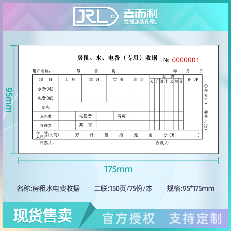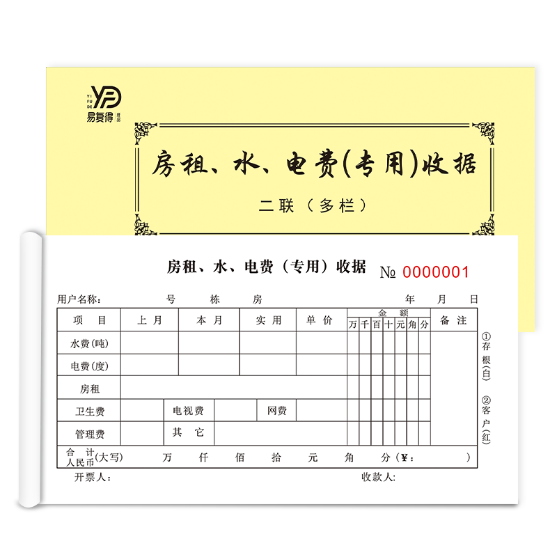 二联房租水电费收据房东租房收租金本两联现金出租屋收款收据定制