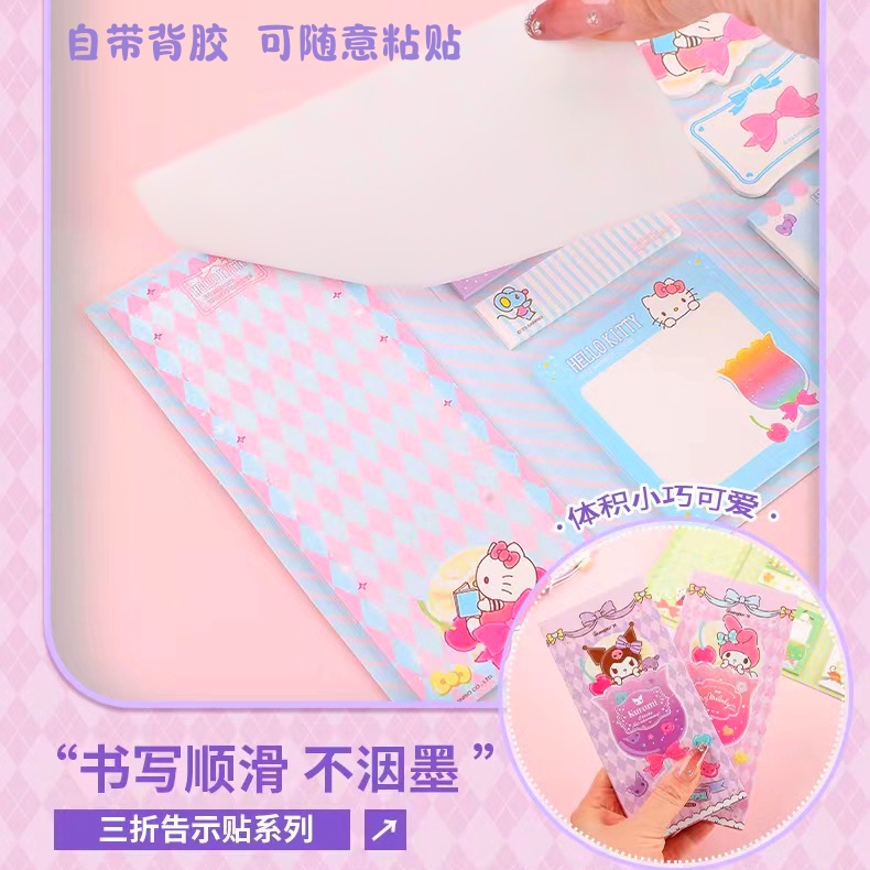三丽鸥三折便利贴高颜值小学生专用酷洛米便签纸本美乐蒂玉桂狗帕恰狗初中生有粘性可爱卡通可撕办公用便签贴