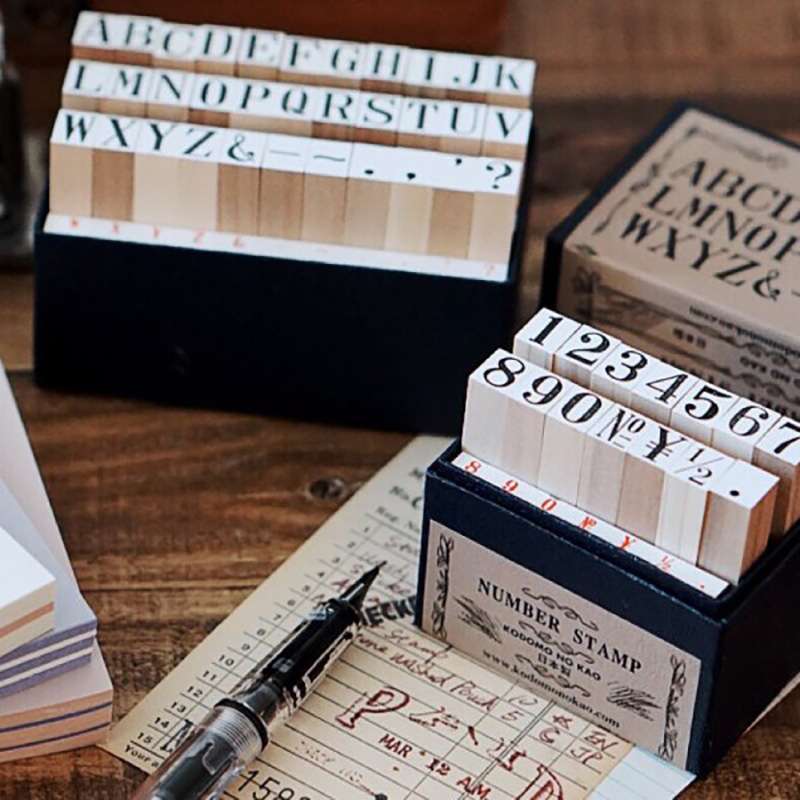 日本KODOMO NO KAO童颜木制印章手账图章复古字体明朝体字母数字
