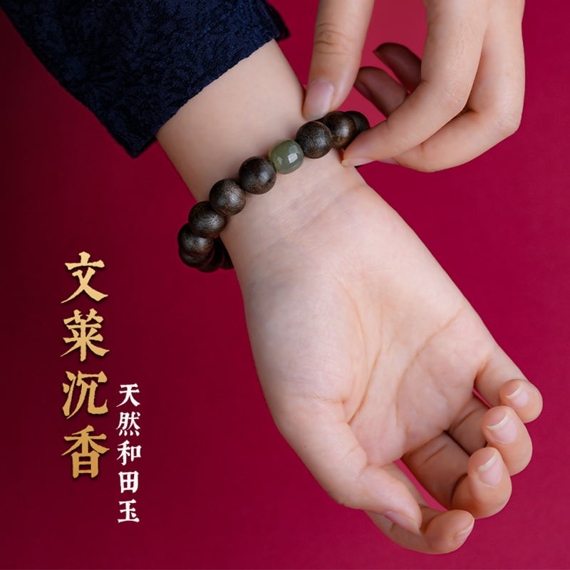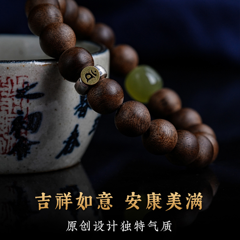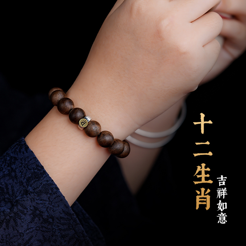 天然文莱沉香手串男老料九分沉奇楠沉香木生肖转运佛珠手链女珠子