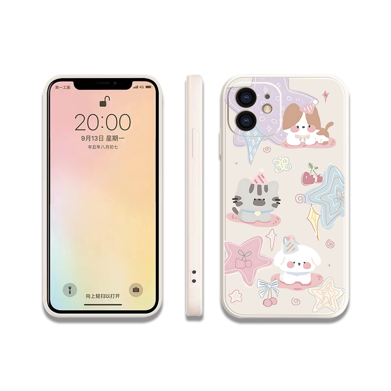 和小狗一起玩耍可爱简笔画液态硅胶手机壳适用苹果17nova14华为p70mate70小米15opporenovivo荣耀300iPhone15