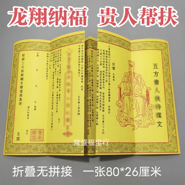 五方贵人扶持大牒文黄纸文书大全【一册一张】尺寸80*26厘米包邮