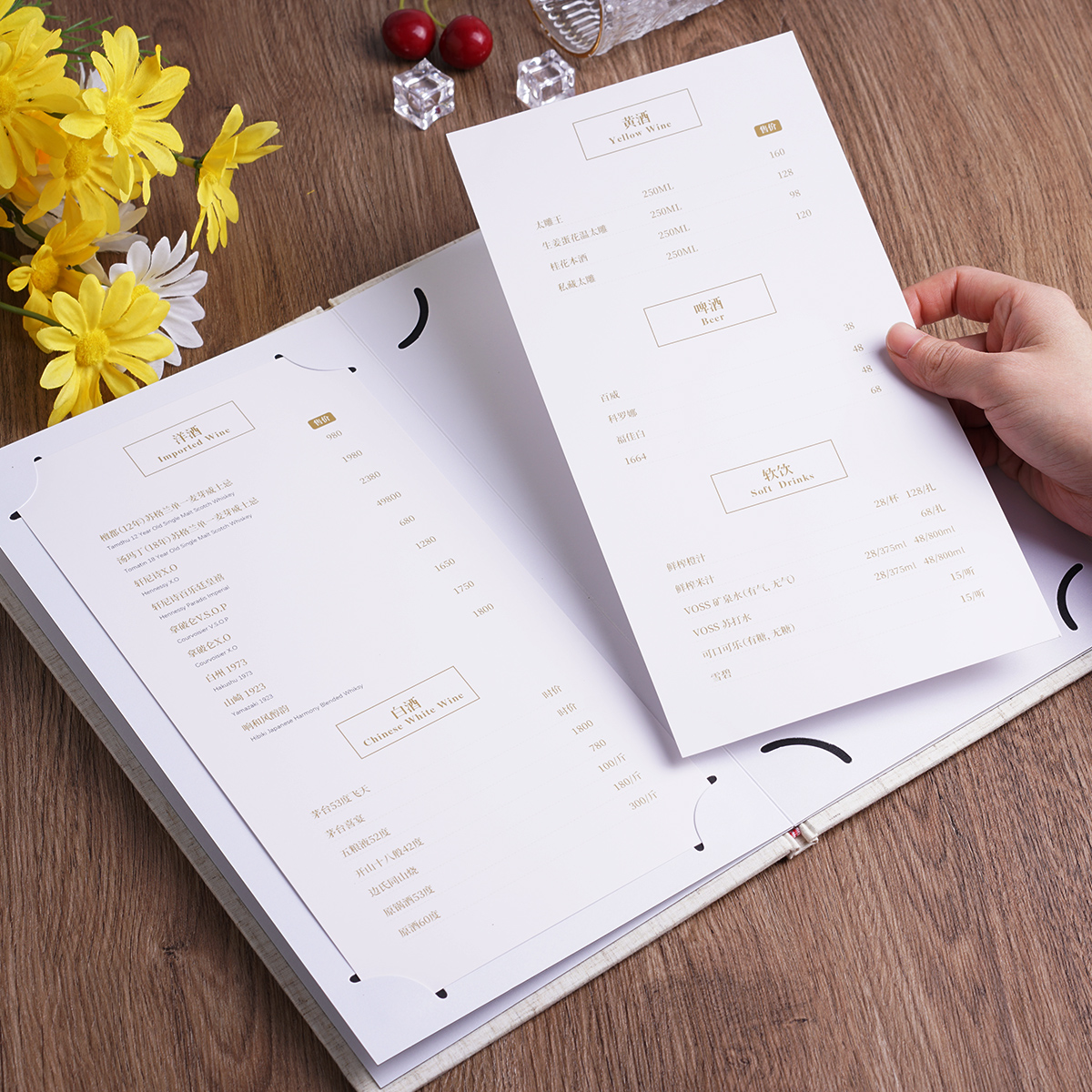 古风高档茶楼茶水单设计制作活页麻布款中式菜单定制饮品单订做