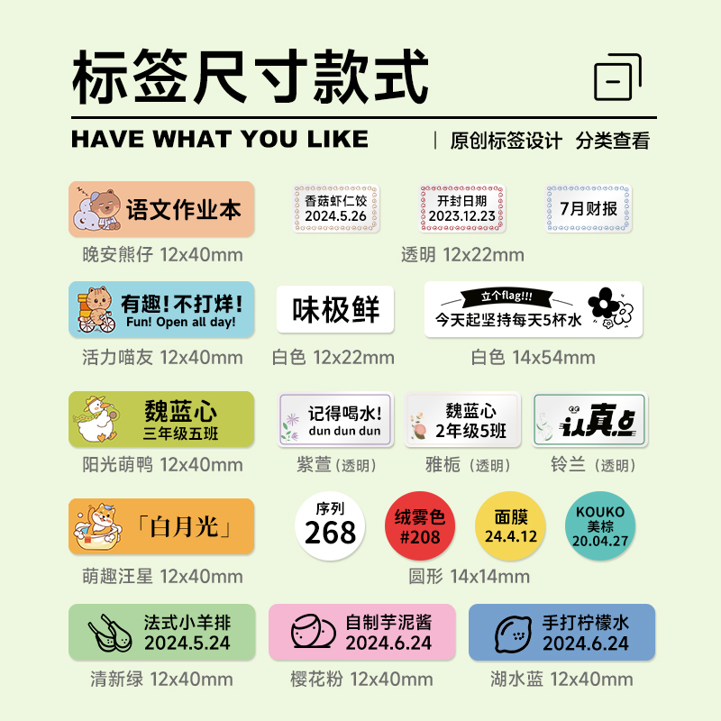 德佟印立方P0标签纸家用食品姓名贴有效期不干胶白色透明彩色卡通防水标签纸