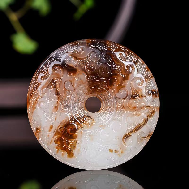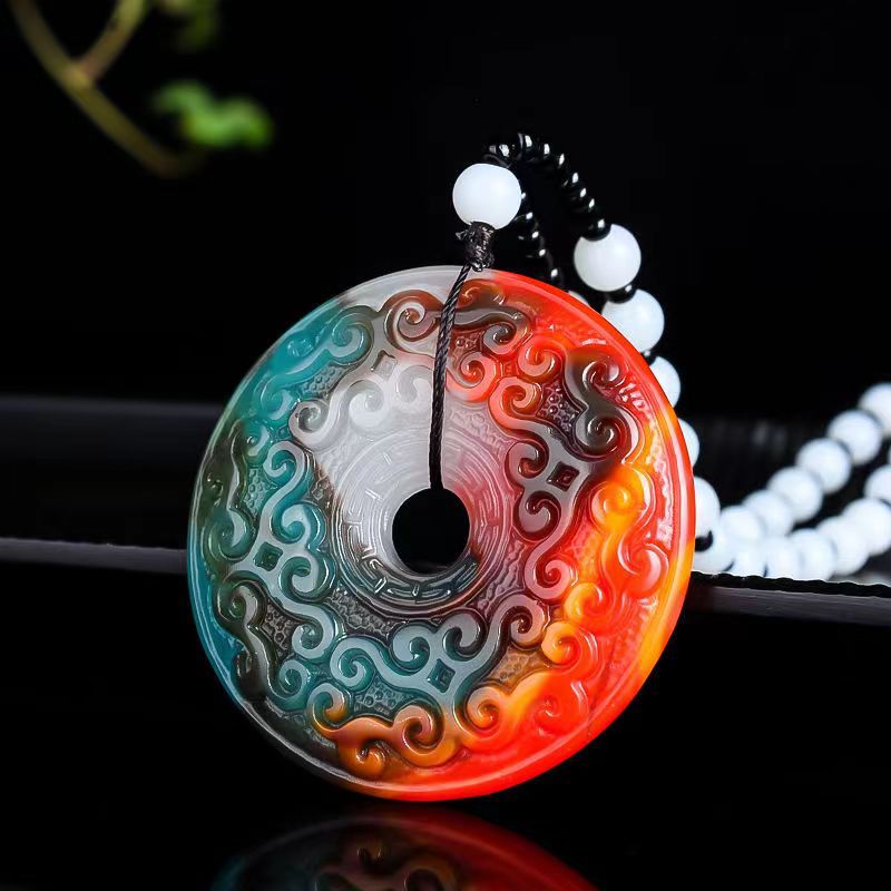 外蒙料和田碧玉如意祥云平安扣吊坠民族风鸡血石玉器平安环配饰品