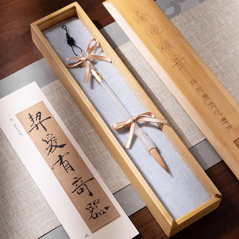 湖颖 皓雪 鸡血玉石毛笔礼盒笔墨纸砚专业级礼品毛笔书法专用狼毫软笔毛笔湖笔文房四宝书法毛笔国画高档送礼