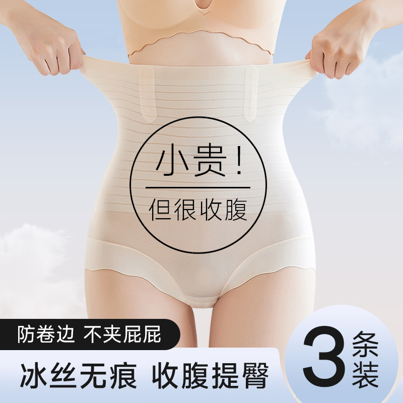 2025新款冰丝无痕内裤女士高腰收腹提臀收强力小肚子抗菌三角裤头