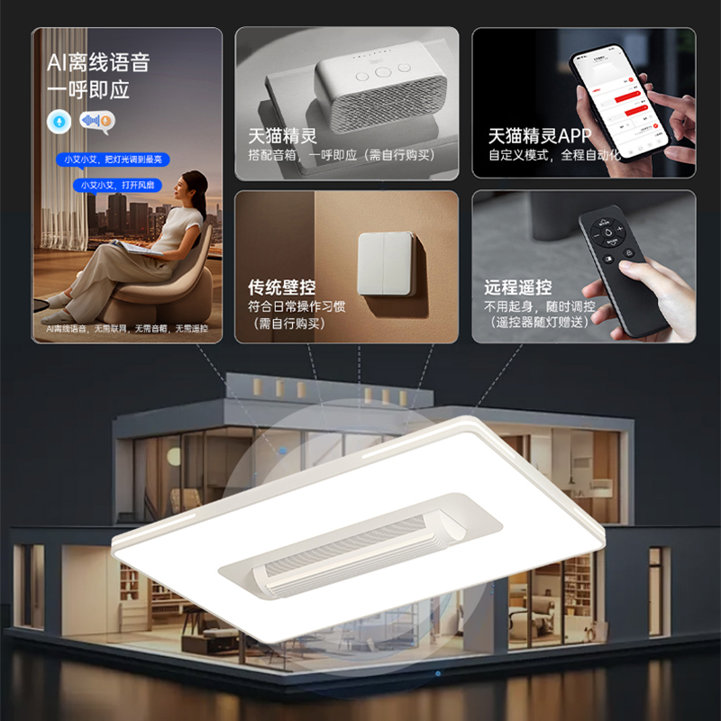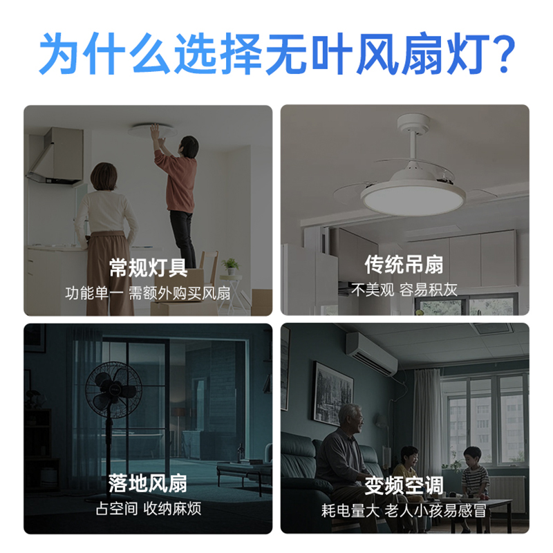 长城照明LED无叶风扇灯现代简约吸顶灯客厅卧室书房间餐厅吊扇灯