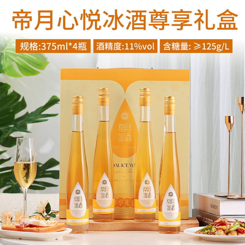 帝月辽宁桓仁心悦冰酒晚收甜白冰葡萄酒甜型红酒威代尔冰白礼盒装