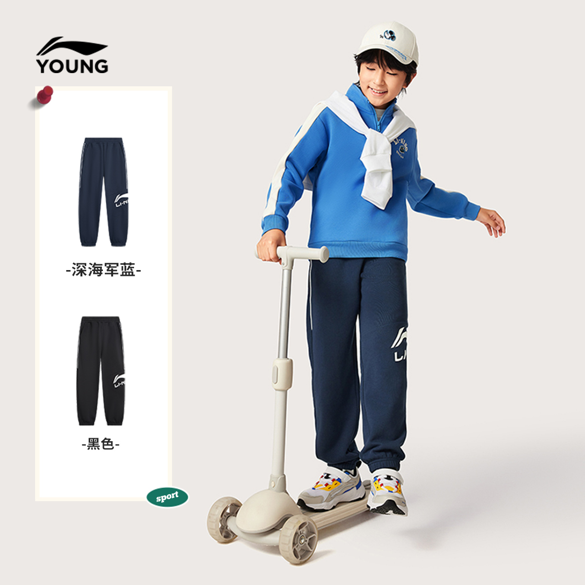 李宁童装卫裤男女大童2025新款运动生活系列秋季休闲束脚童装