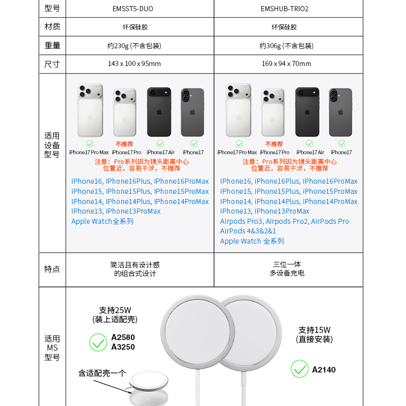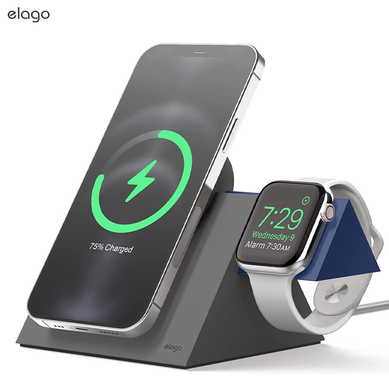elago适用iphone17promax/MagSafe国行15w港行25w充电座磁吸watch11手表充电支架硅胶AirPodspro2三和一底座