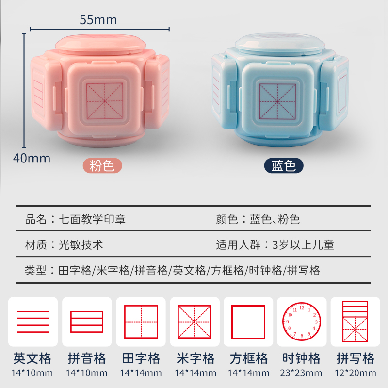 小学生田字格印章七面多功能教师奖励拼音四线三格时钟订正神器钟表时间光敏英文