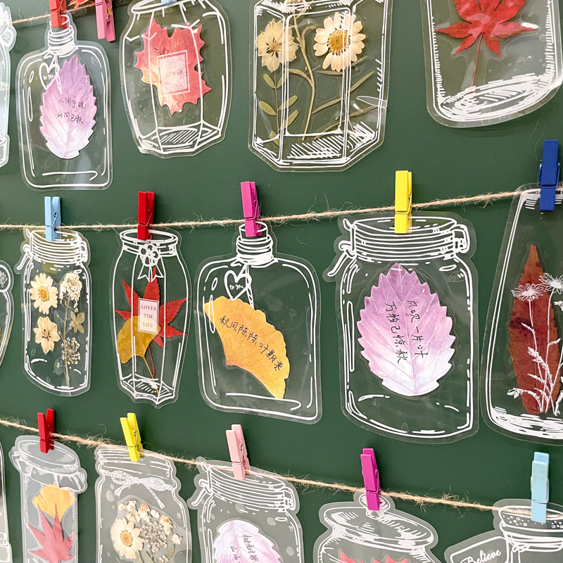 创意透明瓶子里的秋天手工diy干花书签膜幼儿园小学生自制心愿卡