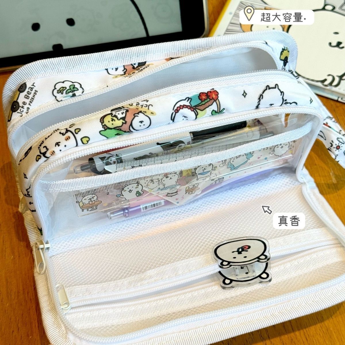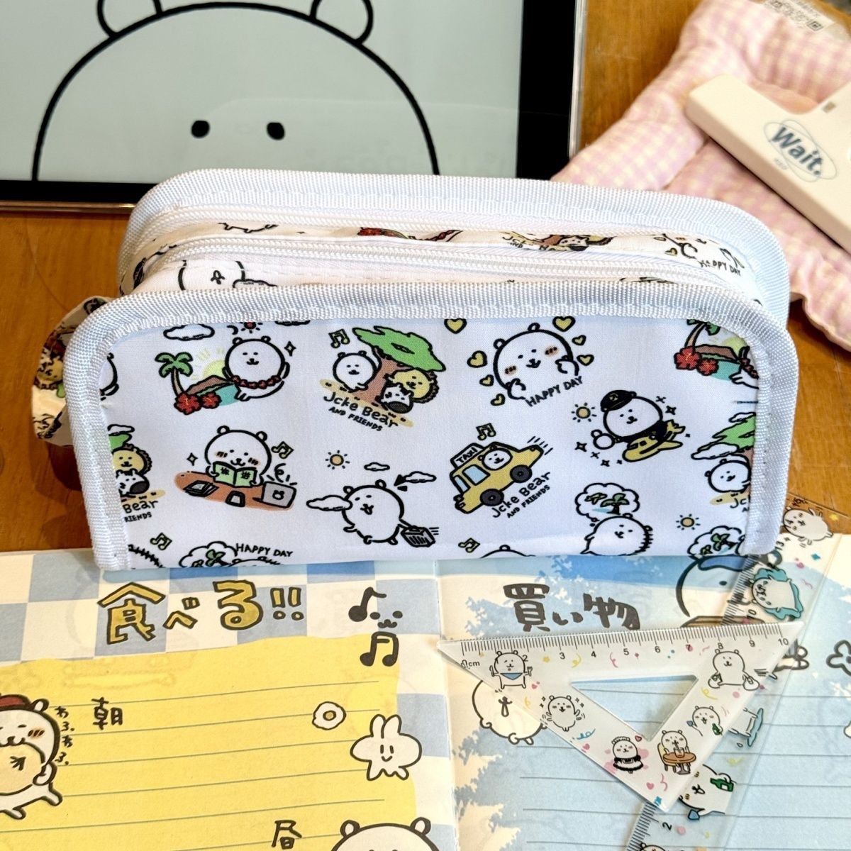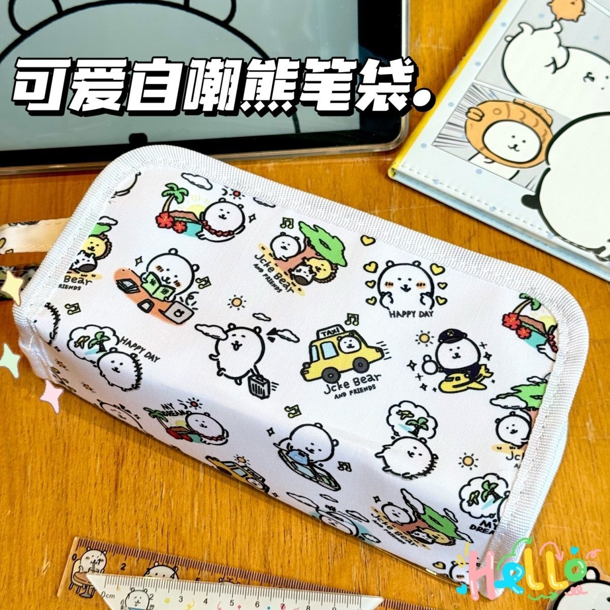 新款可爱熊多功能印花手提笔袋初高中小学生大容量痛包文具收纳袋