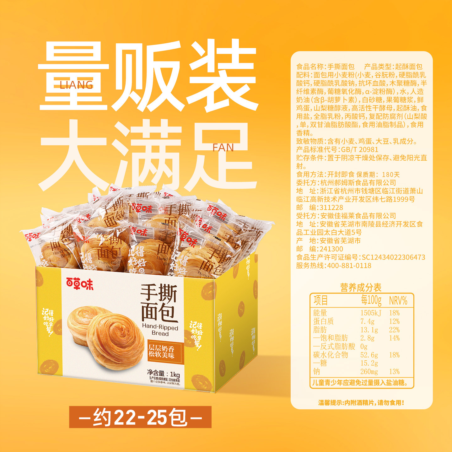 百草味手撕面包1kg蛋糕早餐代餐休闲小吃食品零食整箱囤货糕点心