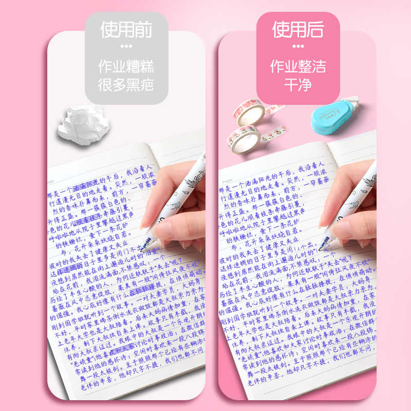可擦中性笔按动可擦笔女生小学生专用复写笔高颜值热敏可擦橡皮摩擦笔男孩三年级上册晶蓝笔芯黑色魔力擦水笔