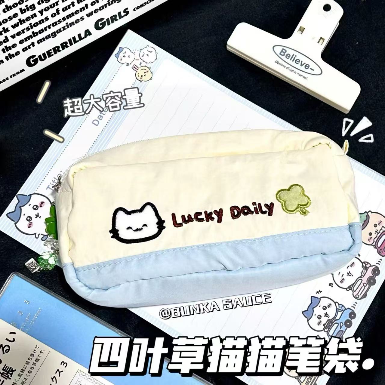ins风高颜值卡通四叶草小猫学生笔袋大容量文具收纳百搭小众笔盒