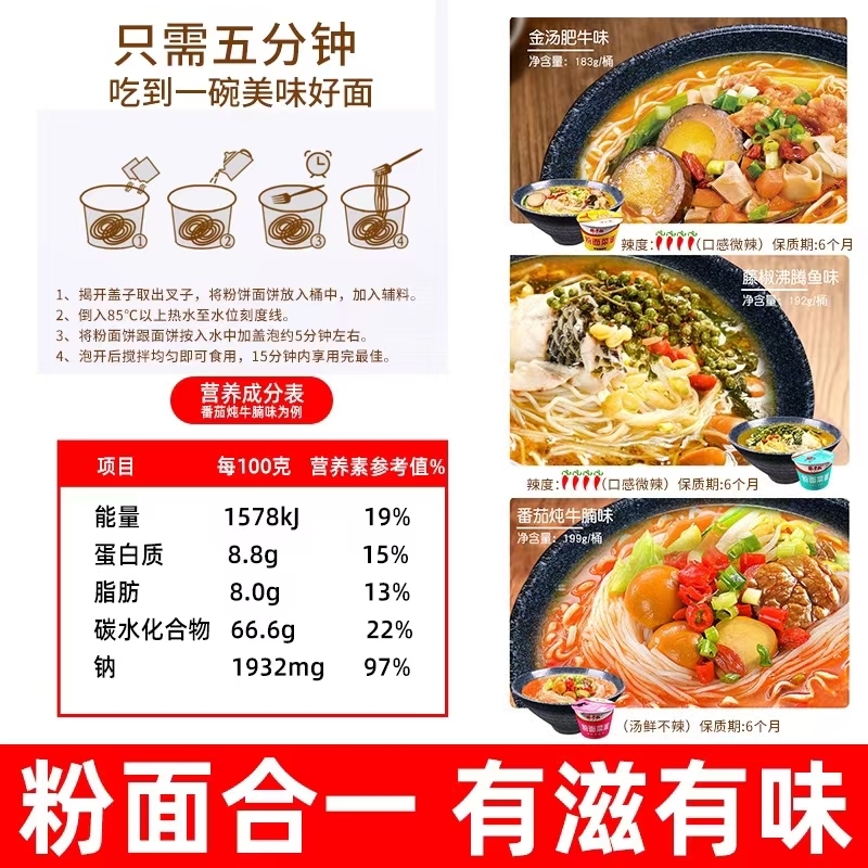 杨掌柜粉面菜蛋螺蛳粉金汤肥牛桶装泡面多口味组合装速食泡面粉丝