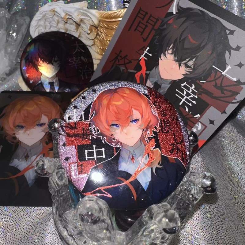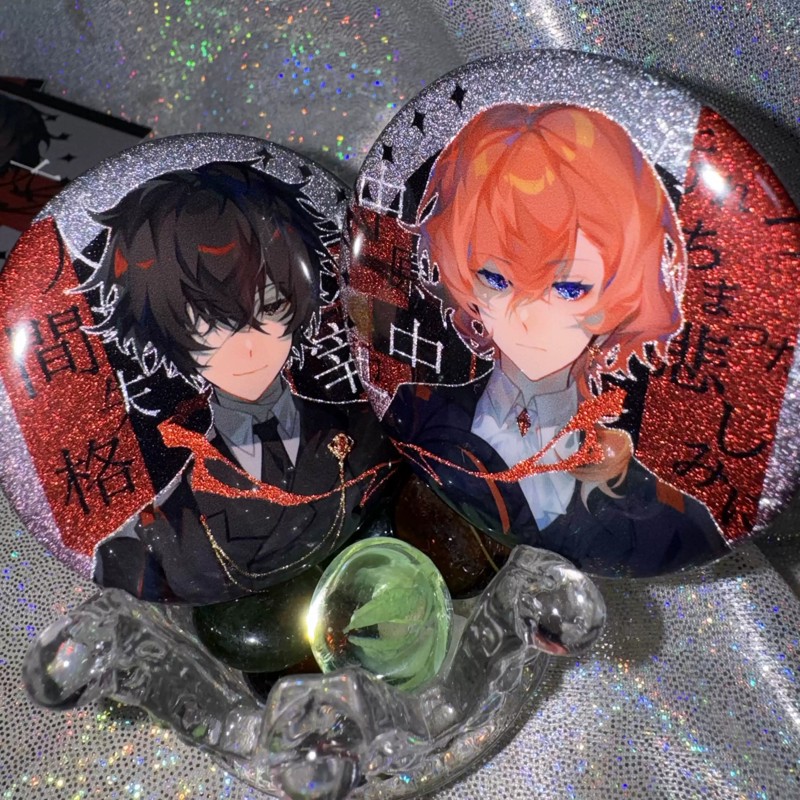 文豪野犬双黑中原中也太宰治铜闪吧唧银葱徽章方卡透卡狱花园现货