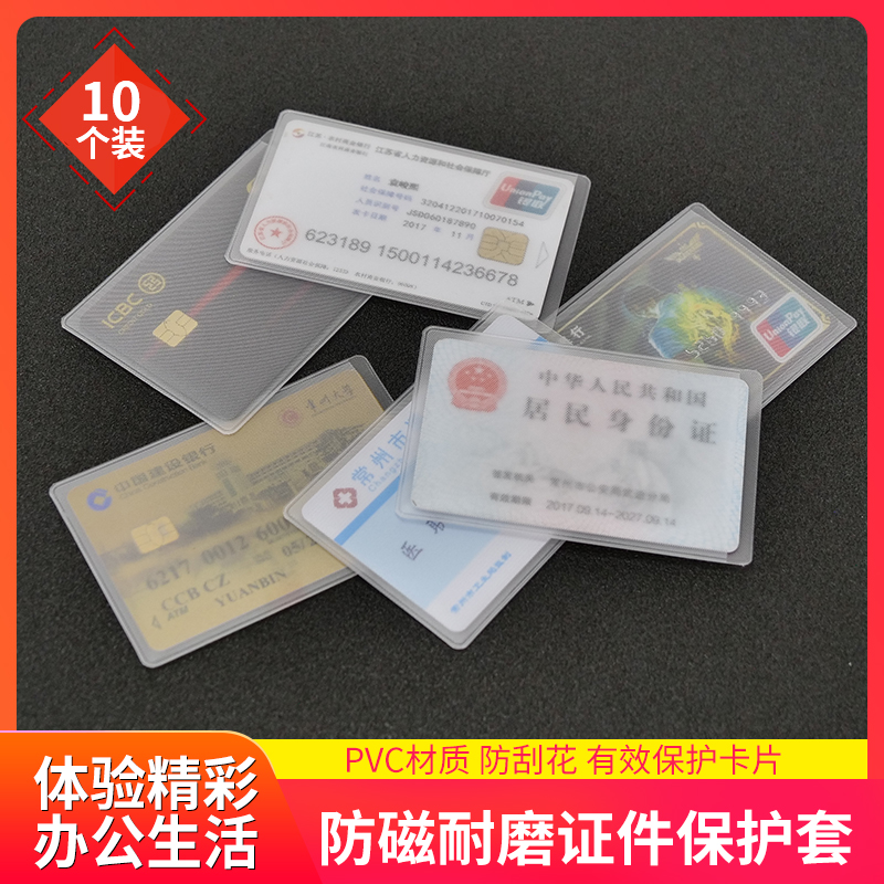10只装身份证保护套卡套PVC材质耐磨防刮花公交卡套防磁防水套磨砂透明定制证件卡套银行卡贵宾会员卡保护膜