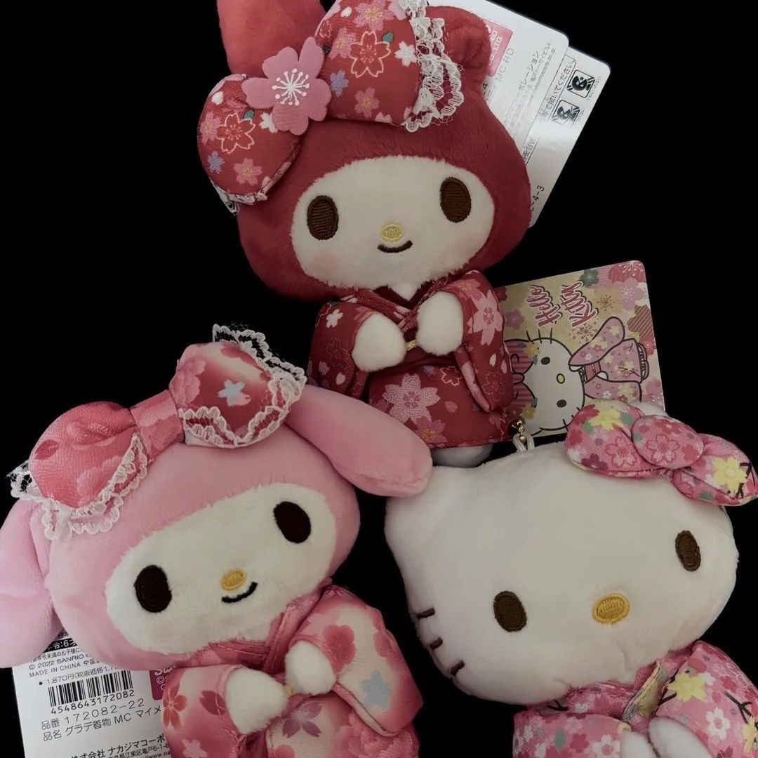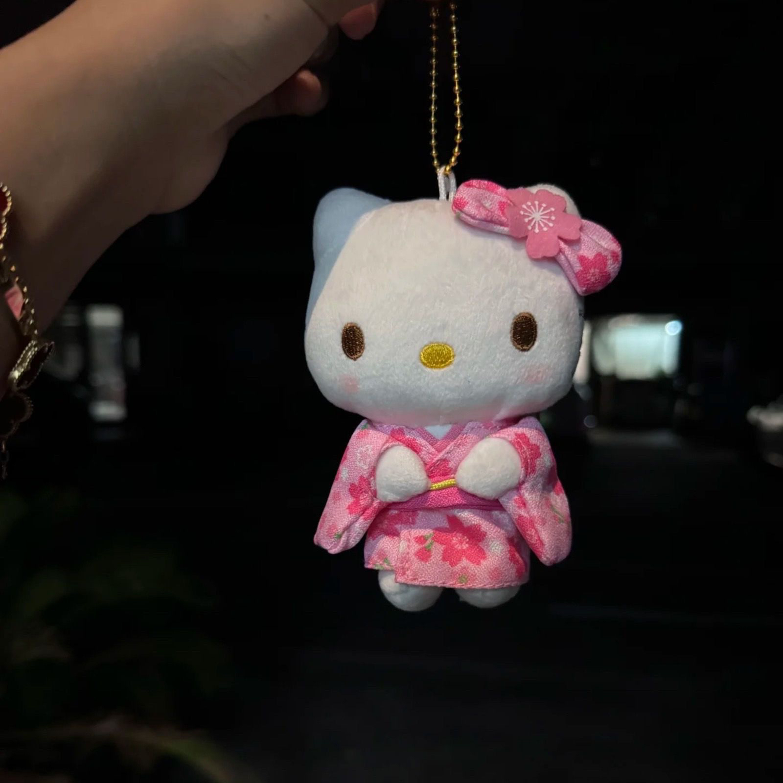 日本代购粉色kitty少女和服包包公仔书包挂件毛绒钥匙扣玩偶挂饰