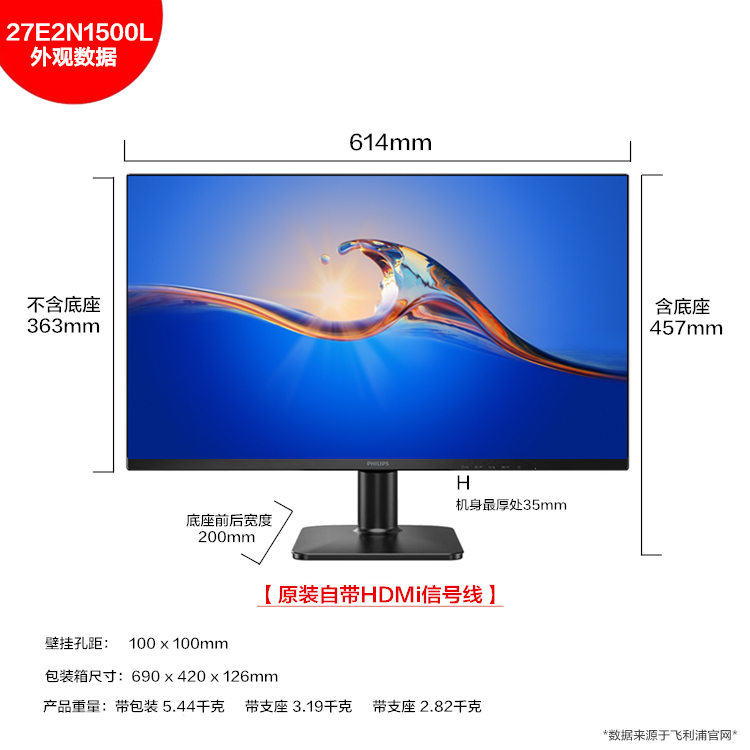 飞利浦27英寸2K显示器iPS窄边75Hz低蓝光HDR办公学习 27E2N1500L