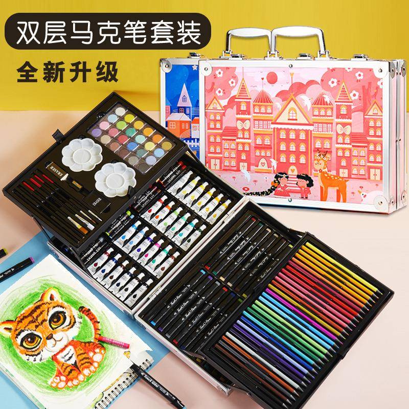 mobee儿童水彩笔画笔礼盒蜡笔画画工具小学生绘画套装美术彩笔幼儿园可水洗男女孩生日61圣诞礼物