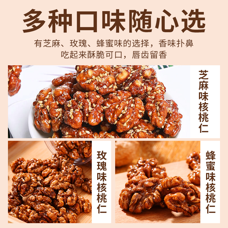 新货琥珀核桃仁新疆薄皮核桃仁蜂蜜炒货坚果干果零食小吃即食500g