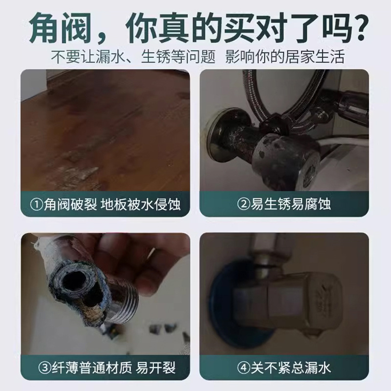 不锈钢角阀非全铜三角阀铜牙体热水器4分一进二出开关加长马桶