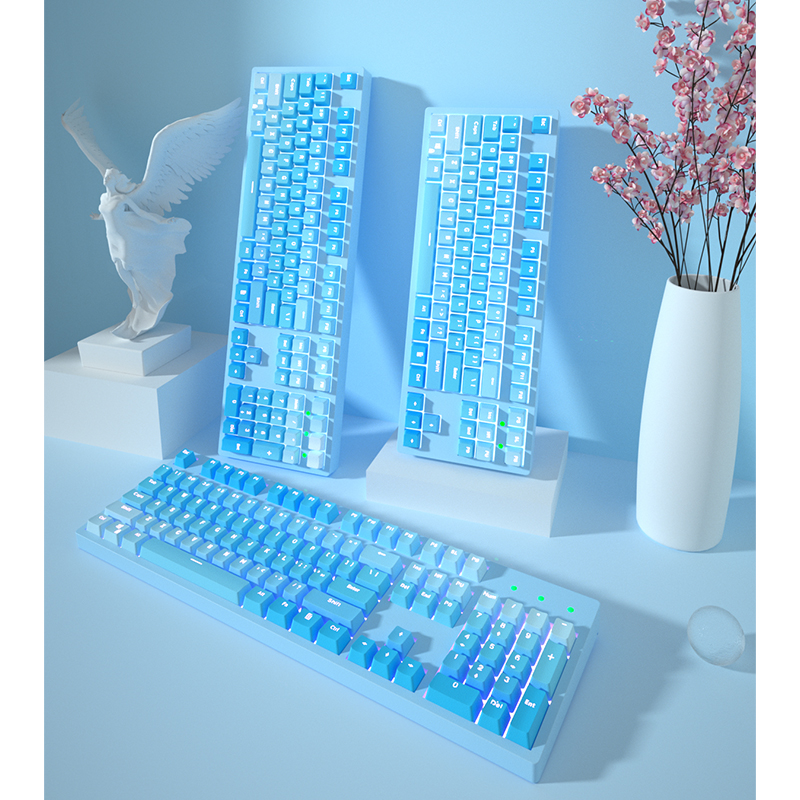 霜冻之蓝渐变色PBT透光键帽OEM高度热升华61/68/84/87/89/104/108