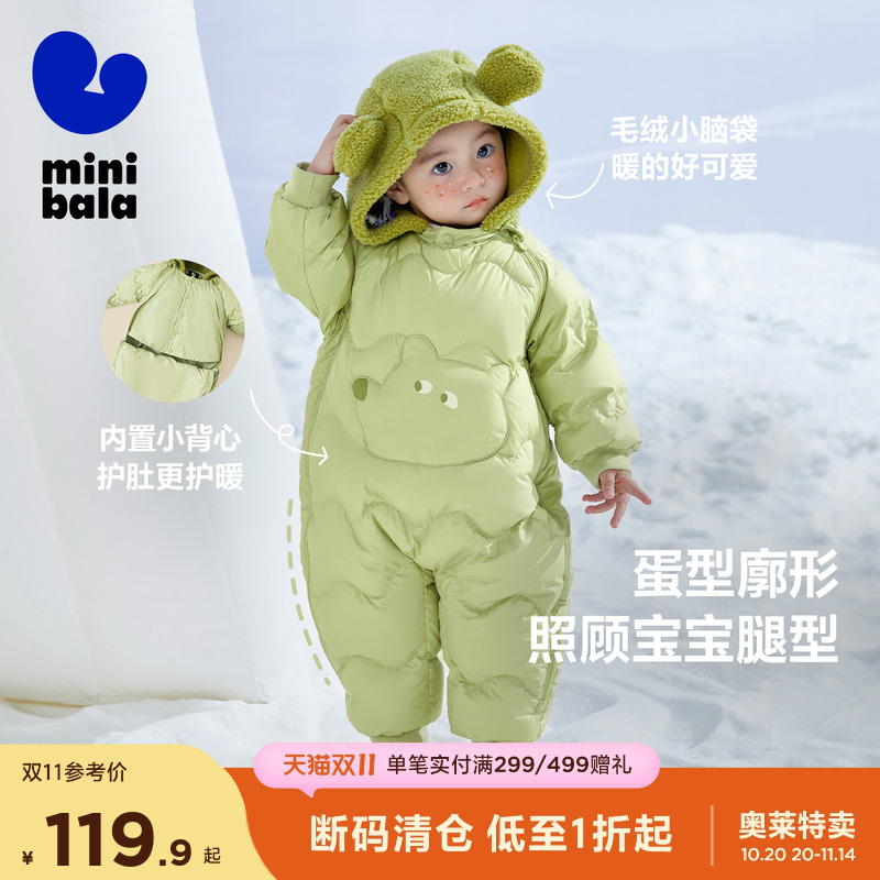【三防】迷你巴拉巴拉男女童羽绒连体衣冬婴儿宝宝保暖爬服哈衣