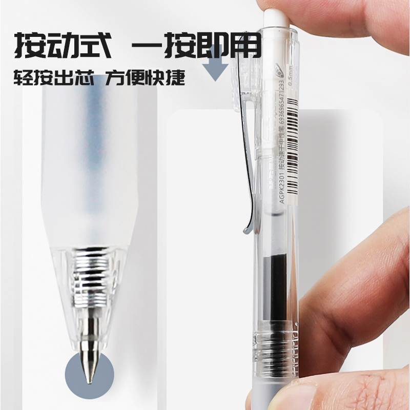 晨光按动中性笔0.5mm刷题笔速干ST头简约透明高颜值按压式笔顺滑不断墨学生日常书写备考考试黑色碳素笔