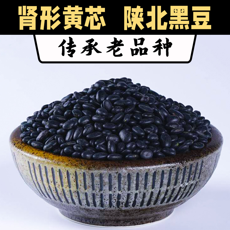 陕北黑小豆黑豆肾形黄芯农家自种老品种小黑豆粗粮豆类杂粮新货