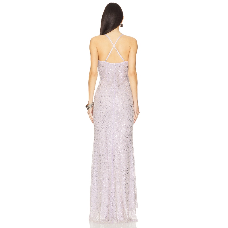 Michael Costello 吊带性感连衣裙淡紫色亮片长裙荡领礼裙REVOLVE