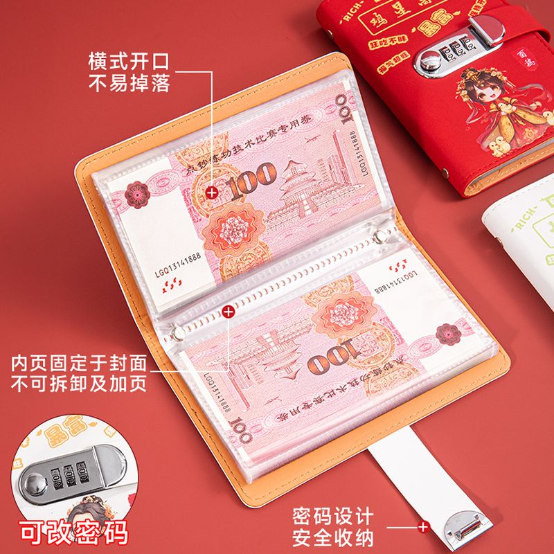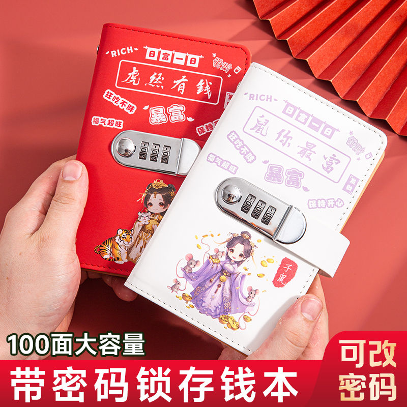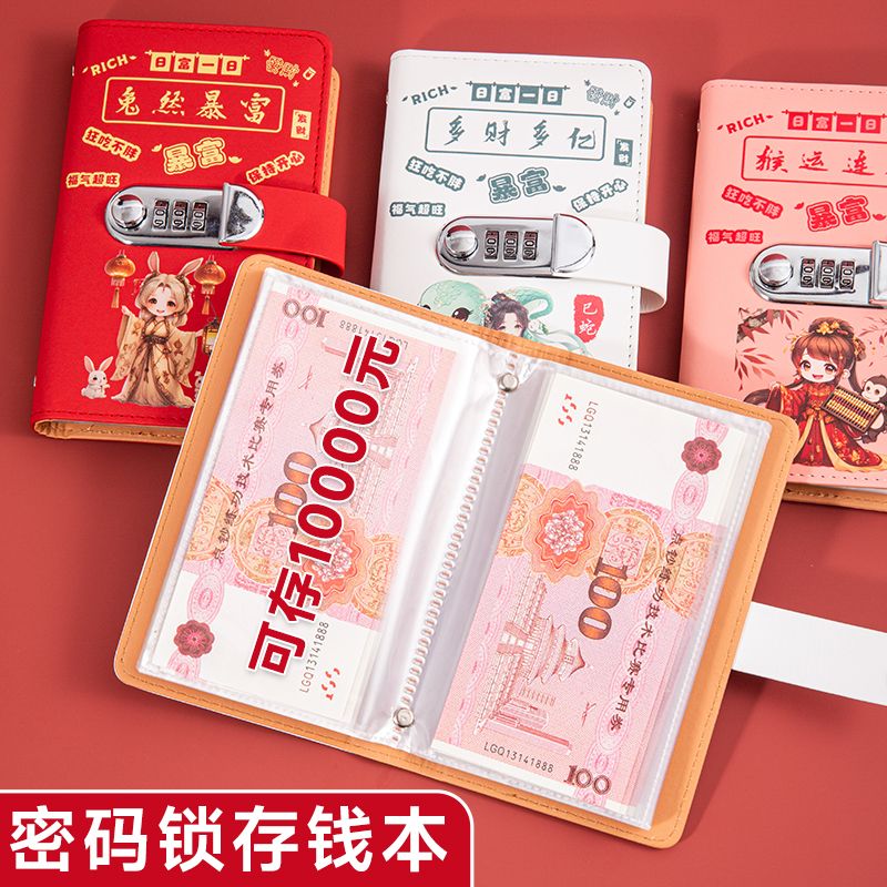 十二生肖儿童现金存钱本百元收藏册网红大容量多功能2025新款理财防水人民币5万元存钱夹钱册存钱袋带密码锁