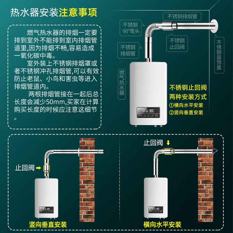 起点如日燃气热水器排烟管304不锈钢加长加厚强直排延长排风排气