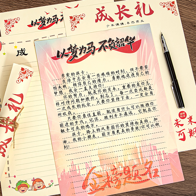 励志以梦为马信封信纸套装高级感烫金祝福语贺卡激励鼓励手写信送孩子一封信高三十八岁信笺红色中国风明信片