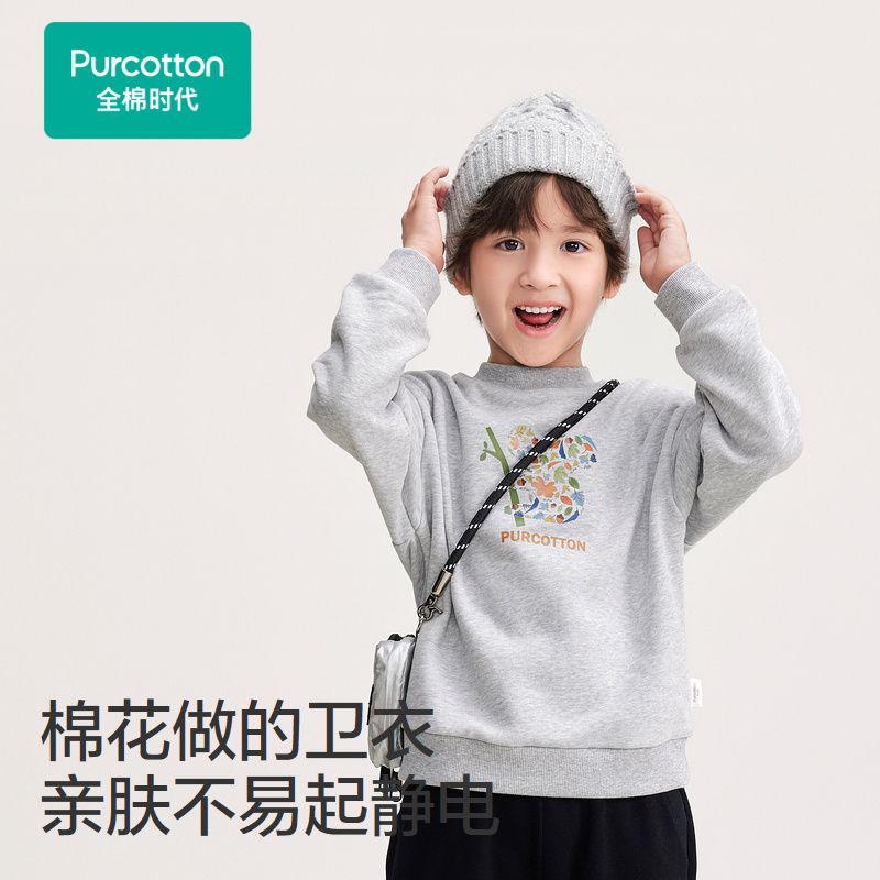 全棉时代儿童加绒卫衣秋冬款新款防风护脖发热套头衫男童卫衣