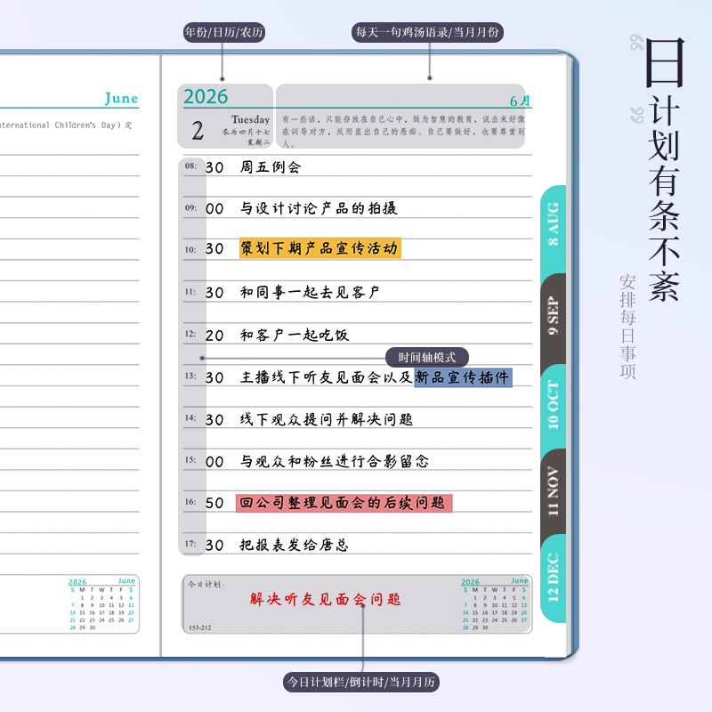 2026年日程本A5工作计划表新款工作日志记事一天每日一页手账本365天效率手册自律打卡时间管理定制logo