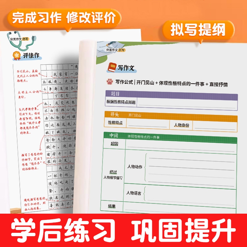 斗半匠】小学生优秀作文大全同步语文人教部编版全5册三至四五六年级上下册小升初满分范文分类素材书写作技巧高分作文仿写五感法