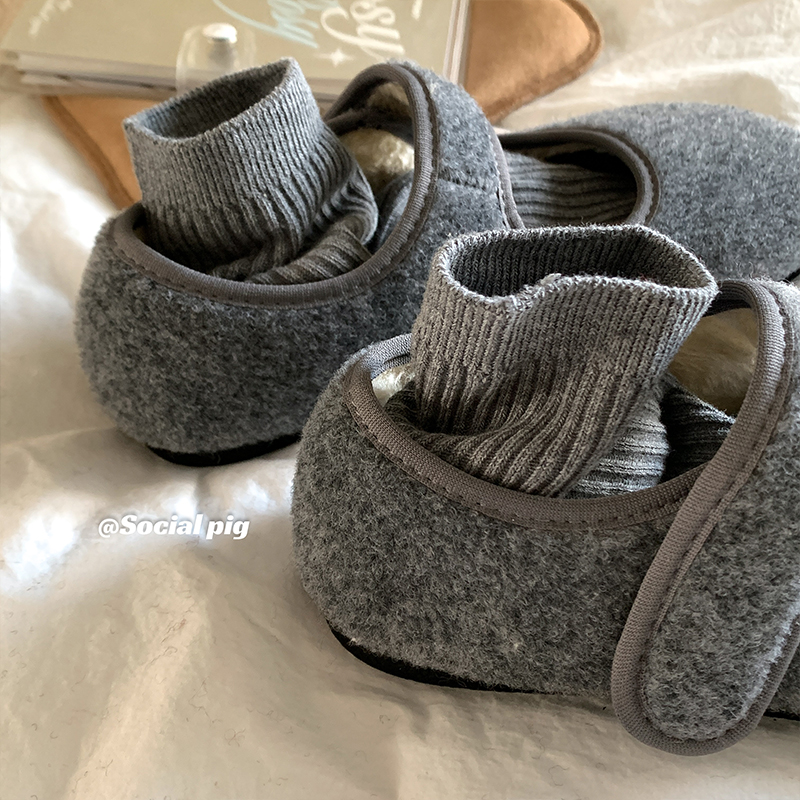 灰灰的~很温柔高级!毛毛鞋女外穿秋冬保暖平底玛丽珍加绒棉单鞋
