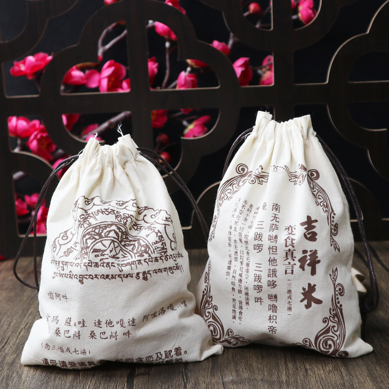 变食真言吉祥米袋白色可收口施食布袋法宝装用袋收纳袋布施鸟粮