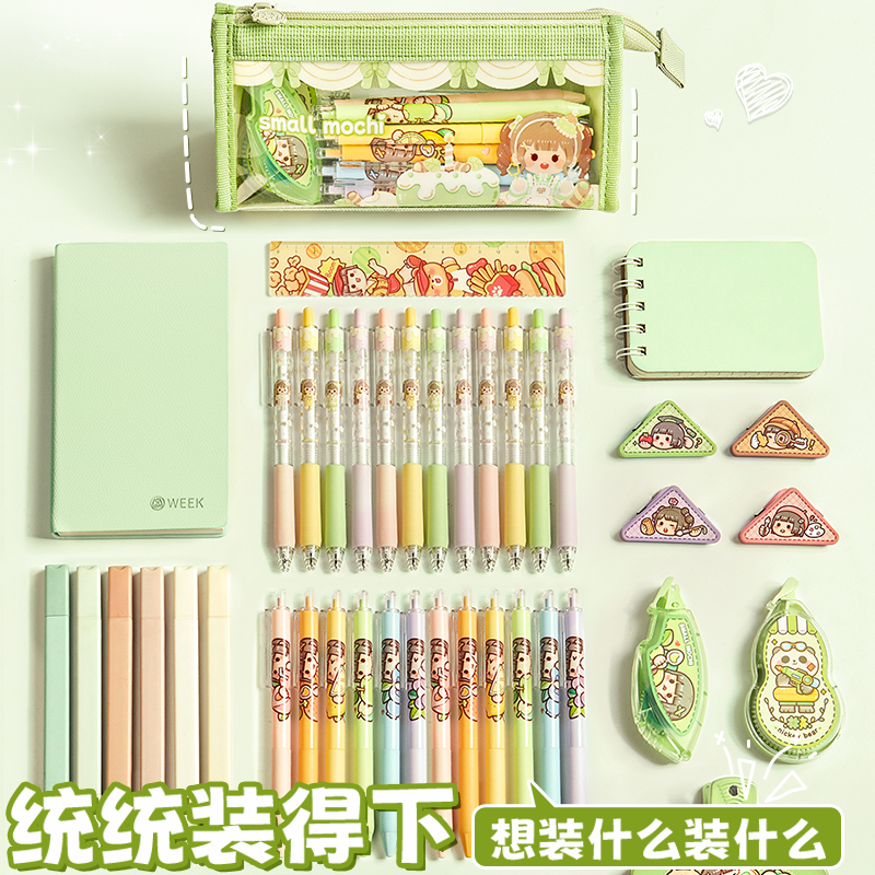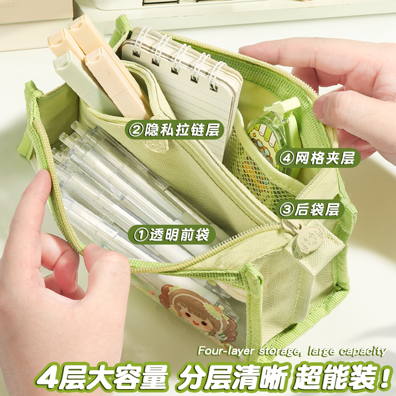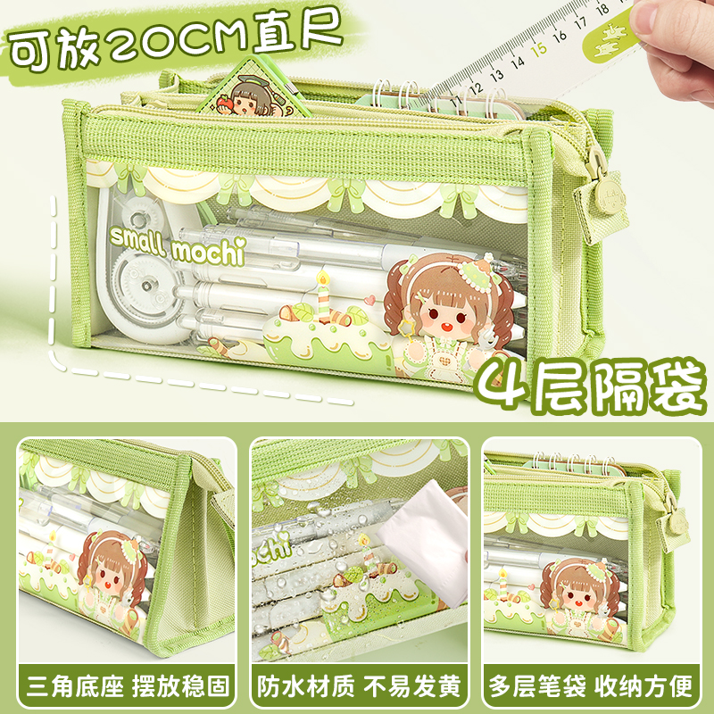 小麻薯笔袋女小学生铅笔盒女孩款大容量三四五年级女童文具盒透明绿色笔袋可爱风高颜值简约耐脏初中女生笔盒