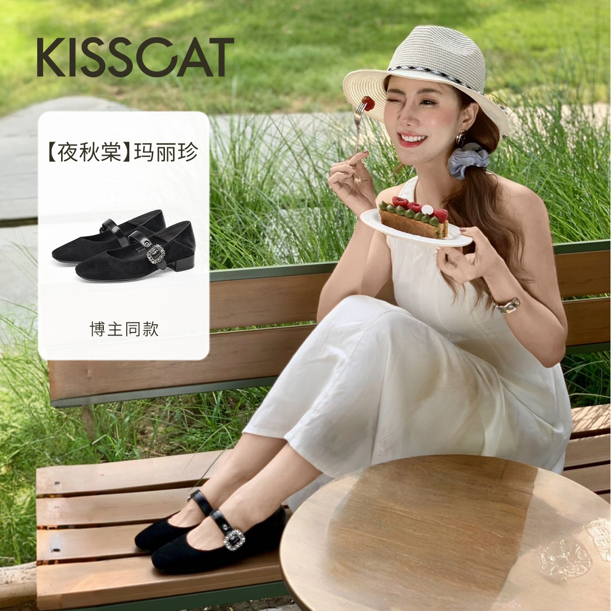 KISSCAT接吻猫[夜秋棠]25秋新法式复古玛丽珍平底不累脚两穿单鞋