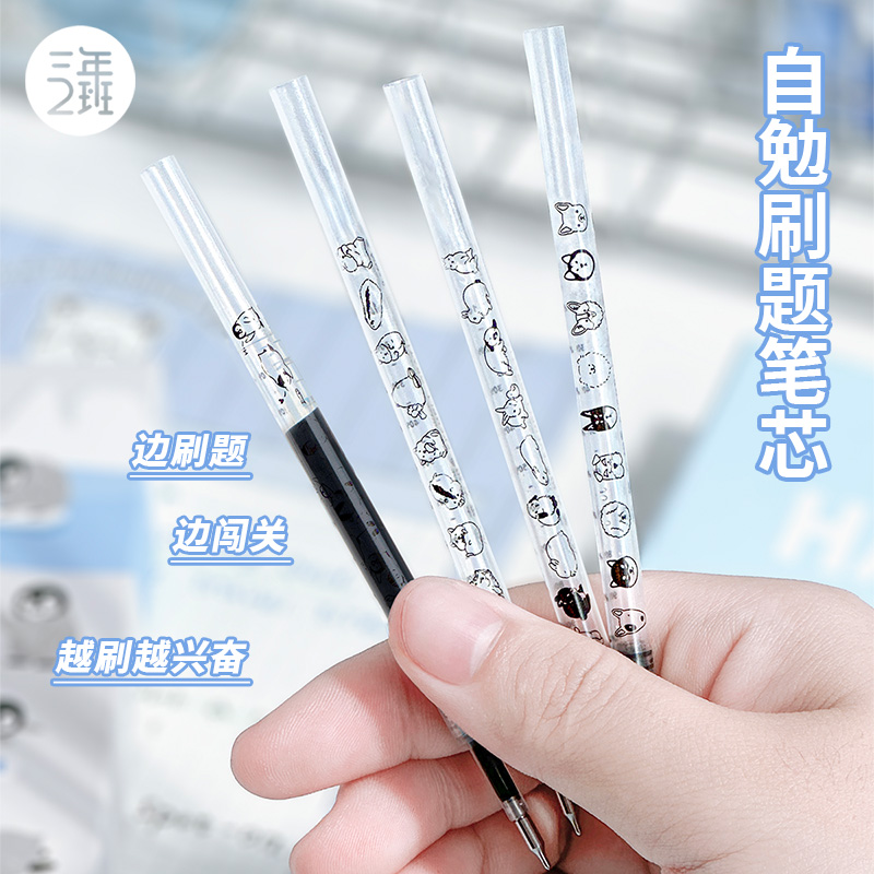 三年二班X笔方说 双珠cs头笔芯0.5mm自勉刷题笔大容量速干顺滑替换芯黑色学生用按动中性笔替芯按压式考试用