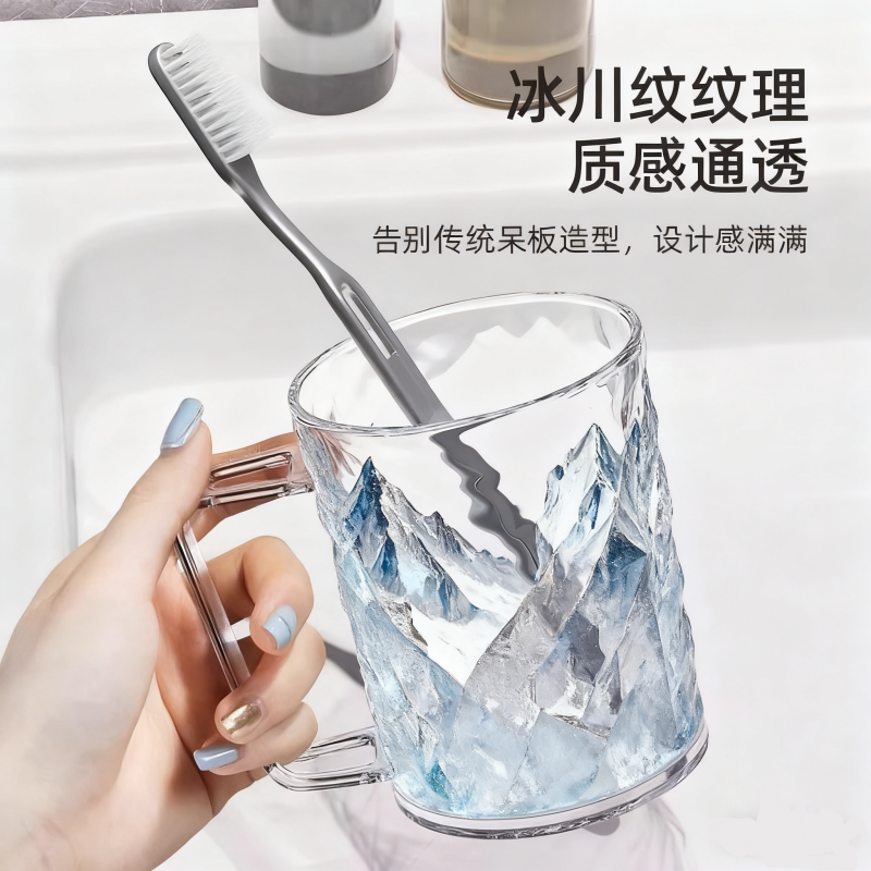 家用冰川纹漱口杯女刷牙洗漱杯牙杯口杯牙缸大容量透明牙刷架杯子