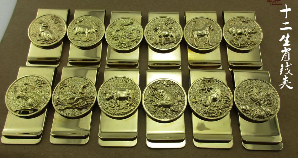 纯黄铜十二生肖钱夹文具票据夹钞票夹书夹子单据整理 EDC户外夹