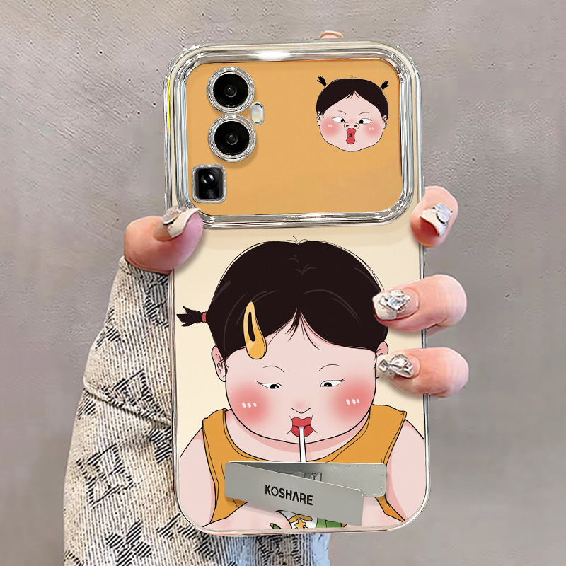 适用opporeno11手机壳vivos17搞怪女孩手链支架小米14电镀6D视窗
