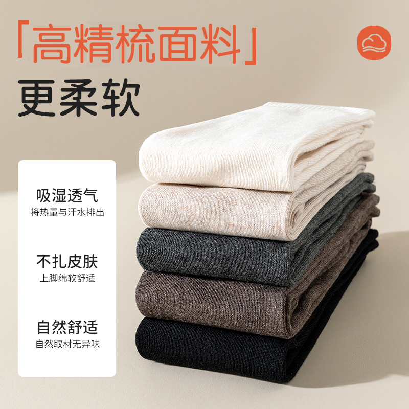 5双装 往往精梳棉质3A抗菌女士袜子中长筒袜纯色休闲男袜秋冬季