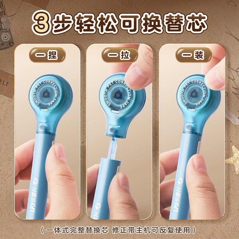 乐普升修正带笔式小学生专用三年级涂改带初中生改正带替换芯修改带乐普生大容量女生高颜值按动静音修正笔